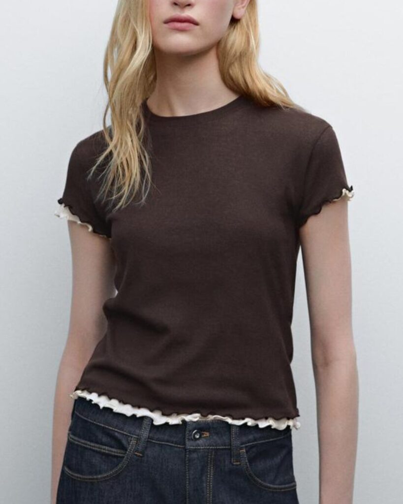 Camiseta doble detalle ribetes onduladas