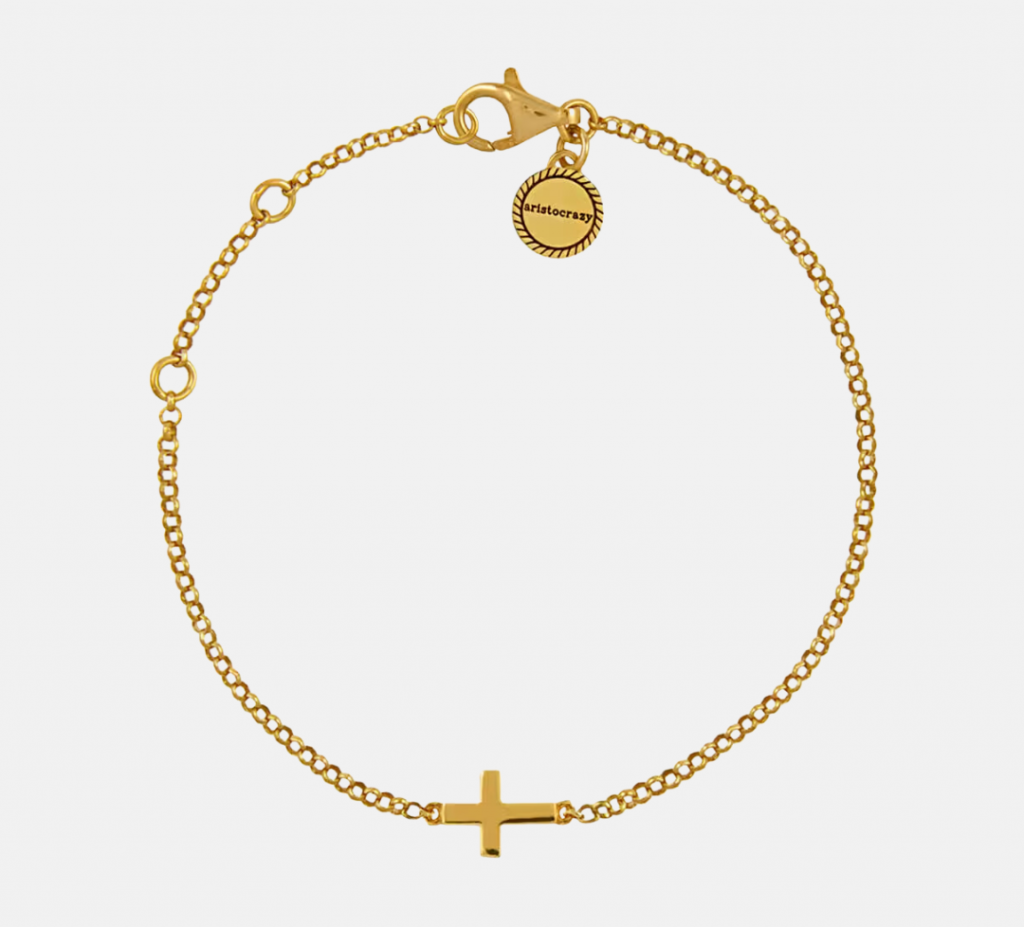 Pulsera de plata 925 bañada en oro amarillo de 18kt con cruz (Disponible en Aristocrazy)